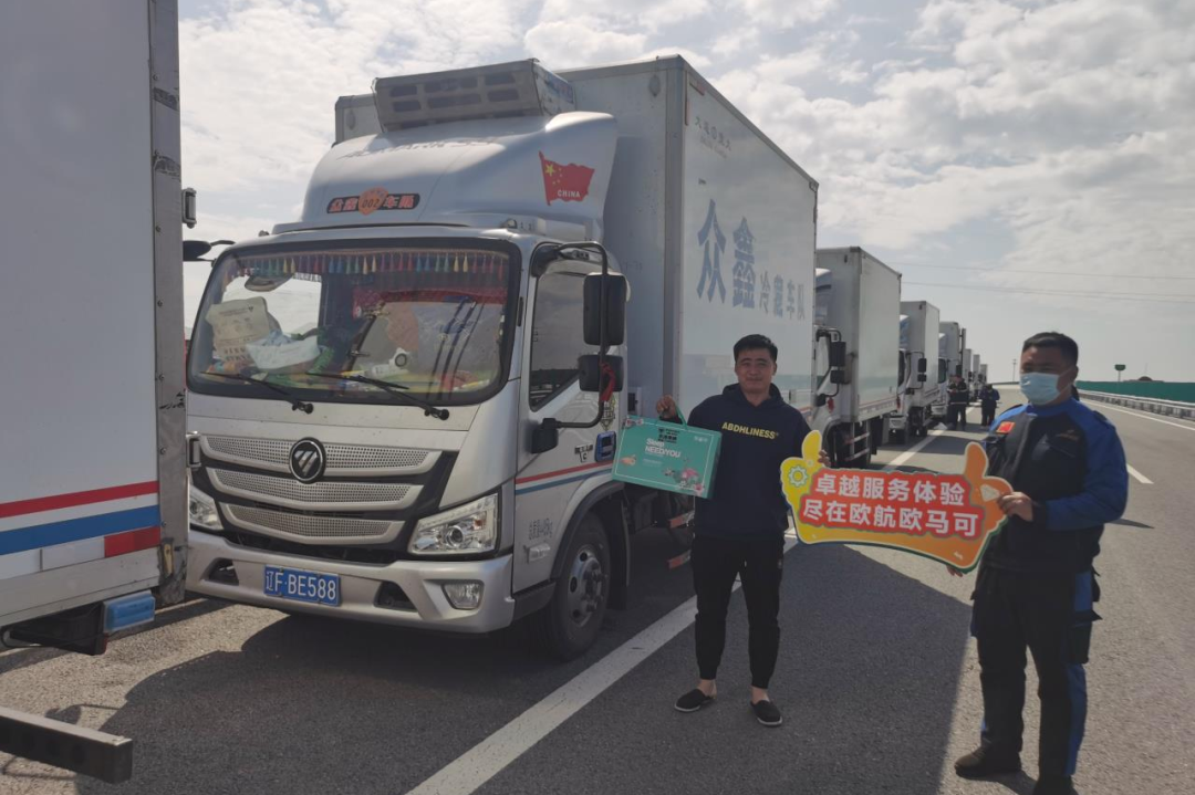 歐航歐馬可:在全國八大省份高速公路服務區的歐航之家,為客戶提供免費就餐服務;針對疫情管控被封在封控區和高速路的卡友,提供餐食、消毒液、口罩、新冠抗原試劑、免費停車、滿電充電寶等多項暖心服務。