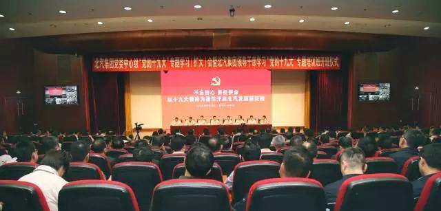 10月27日,北汽集團召開黨委中心組黨的十九大專題學習(擴大)會暨北汽集團領導干部學習黨的十九大專題培訓班開班儀式,發表題為《不忘初心 勇擔使命 以黨的十九大精神為指引開啟北汽發展新征程》的講話,北汽集團黨委中心組成員及下屬企業廠部級領導干部近400人參加會議。