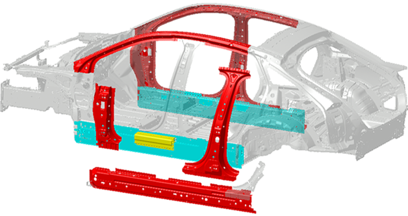 The ARCFOX αS steel and aluminum hybrid body-in-white fully reflects the design concept of high performance and lightweight from the selection of materials. Through the rational use of various aluminum alloys and steel materials such as integrated vacuum high-pressure casting aluminum alloy, 1500 MPa thermoforming steel, aviation aluminum and advanced ultra-high strength steel, the proportion of aluminum alloy in the whole vehicle reaches 46.6%, and the advanced high-strength steel and thermoforming steel accounts for 33.8%. The body lightweight coefficient reaches 1.6 with batteries and 2.1 without batteries, fully leveraging the advantages of steel and aluminum and laying a solid foundation for the lightweight car body.