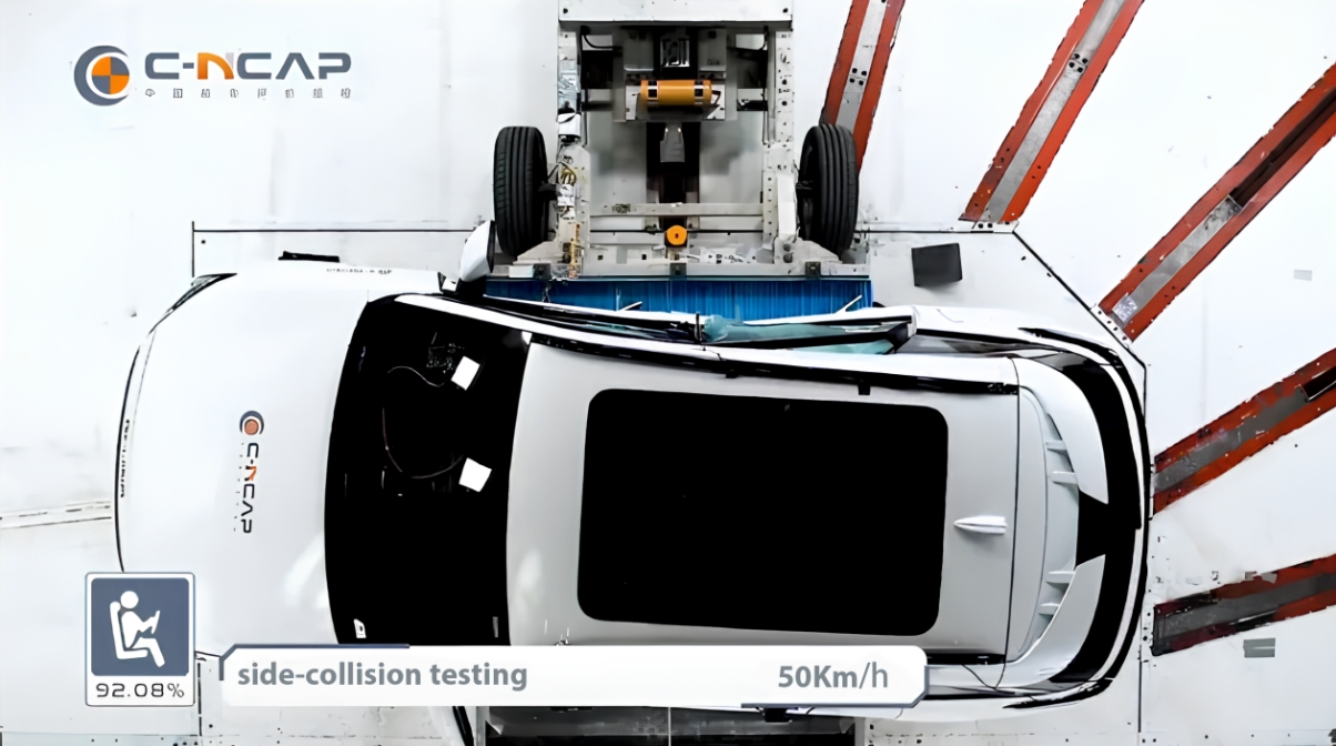 The stringent side-collision test challenged the vehicle's side structure. Beijing X55II effectively resisted damage from the collision's impact energy through its ultra-high-strength B-pillar, door anti-collision beams, and sill. Coordinated deployment of side airbags protected passengers from collision-related harm.
