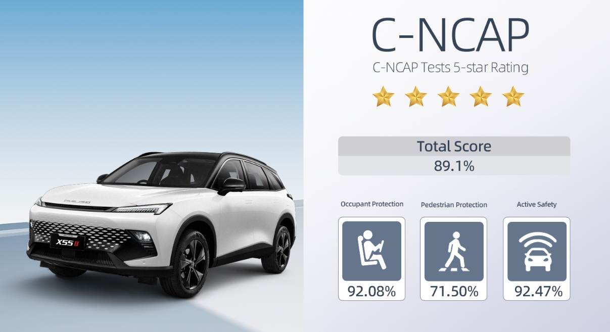 Beijing X55II joins the Five-Star Club in C-NCAP alongside other renowned vehicles such as the Arcfox αT, Arcfox αS, and Arcfox αS (Launch Edition), as well as the Beijing Auto X7.