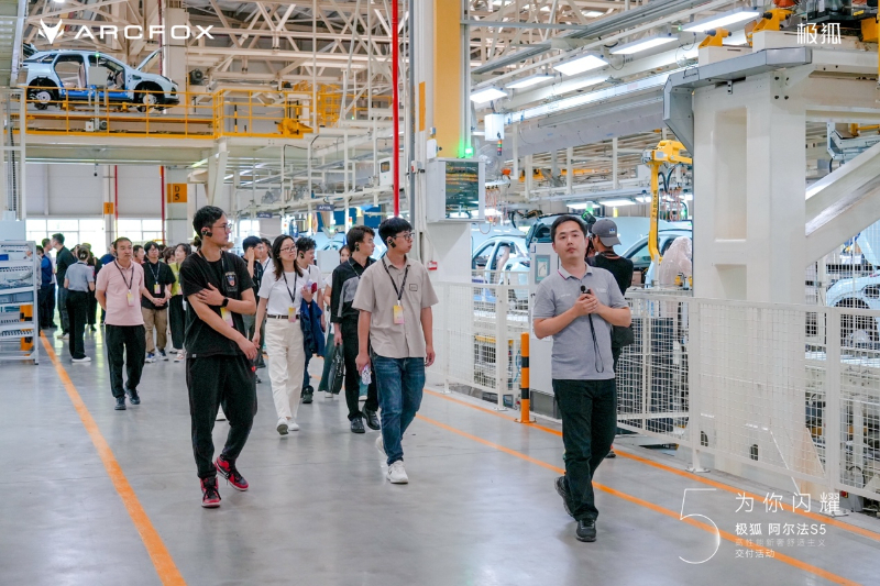 除了交付誠意之外,極狐阿爾法S5產品本身的魅力,更加打動用戶。交付當日,包括媒體、行業達人在內的近百位用戶,親眼見證了極狐阿爾法S5的生產過程,還開上一輛輛剛剛裝配完成的阿爾法S5,化身“品質驗證官”搶先體驗。