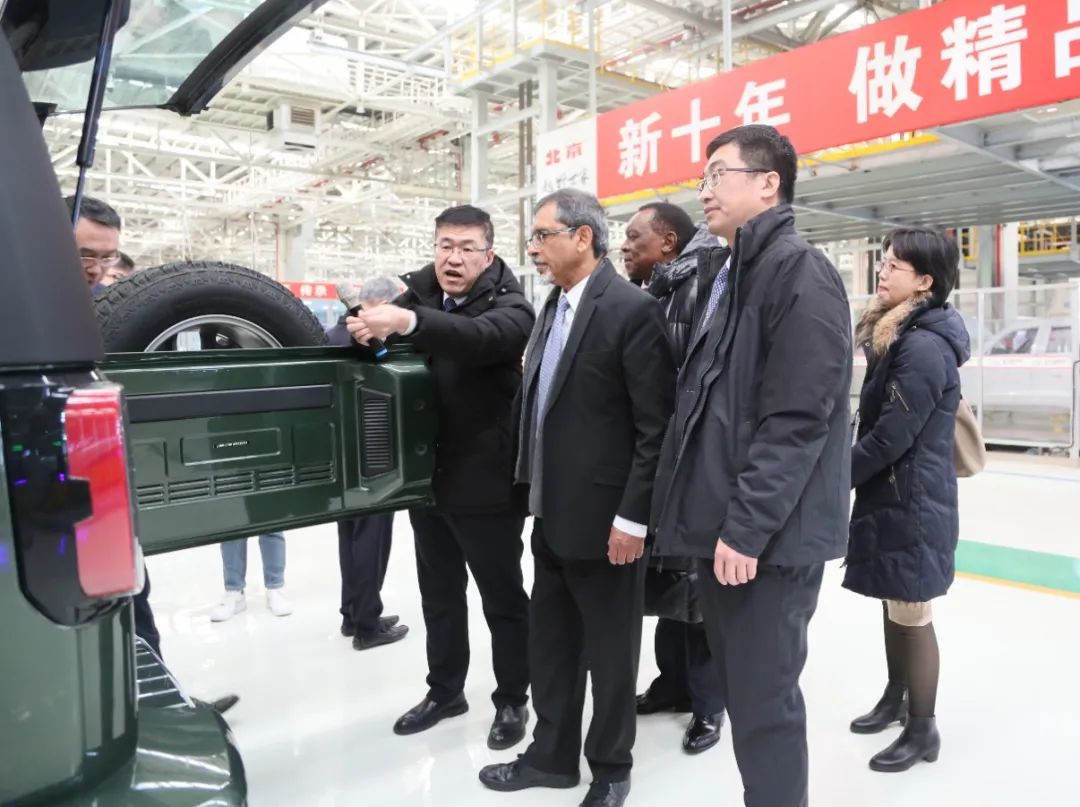會前,易卜拉欣·帕特爾一行詳細了解了北京BJ30增程版、BJ60增程版、BJ80右舵版、BJ40右舵版、極狐阿爾法S山川版及阿爾法T森林版等自主乘用車品牌主力車型,觀看了北京越野性能展示并進行試乘體驗,對車輛性能給予高度評價。
