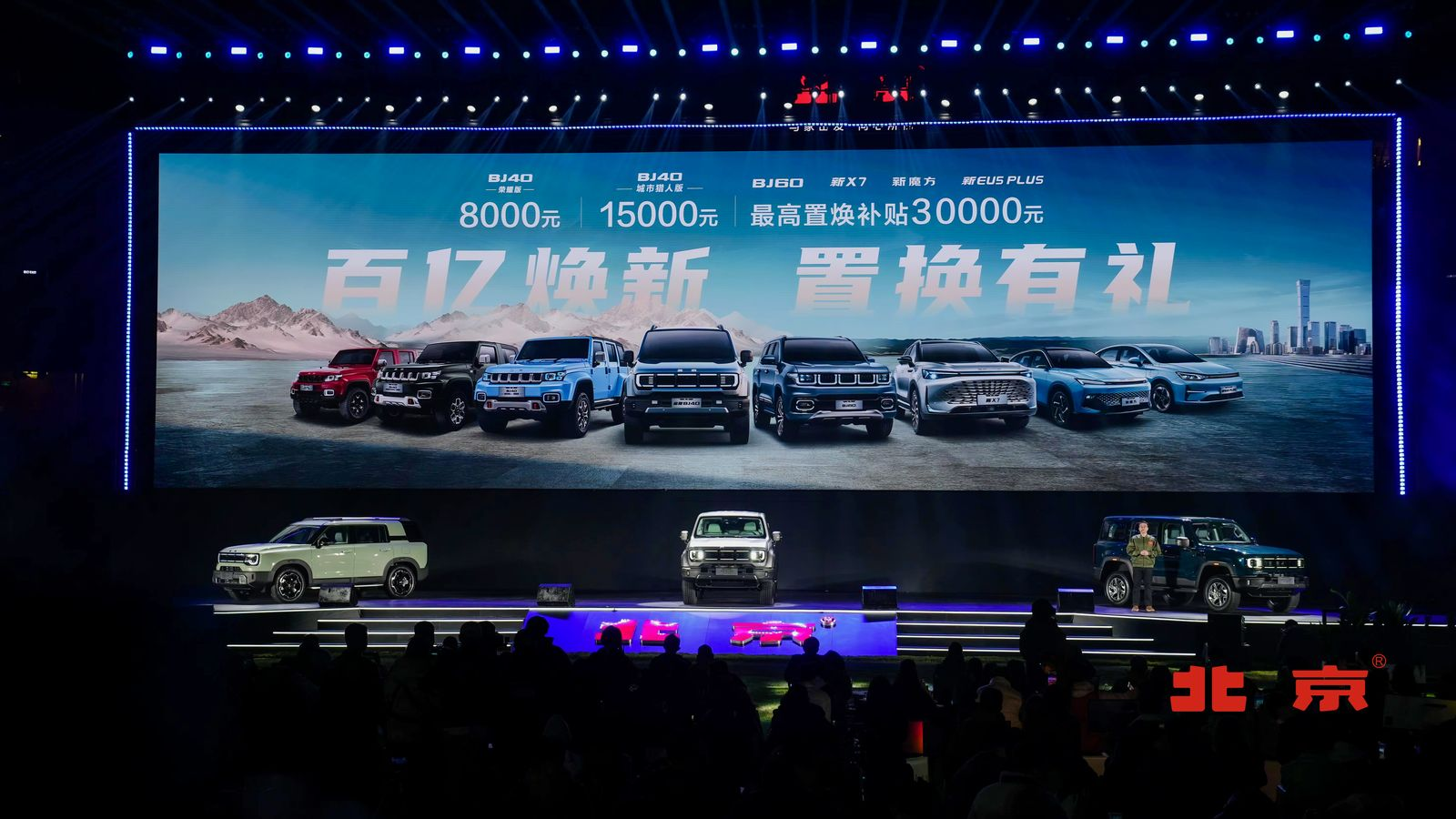 發(fā)布會最后,北京汽車還用豐厚的福利政策,為用戶帶來了兩大彩蛋,讓北京用戶的粉絲們驚喜連連。彩蛋之一,是3月18日正式上市的BJ40榮耀版,以13.98萬起的售價和更高的配置,打造 “專業(yè)越野性比價第一車”,讓越野更加親民。 彩蛋之二,是“百億煥新,置換有禮”。北京汽車聯(lián)合全國經(jīng)銷商,拿出“百億資金”,推出大額度置換福利,BJ40榮耀版置換補貼8千元;全新BJ40城市獵人版置換補貼1.5萬元;BJ60、新X7、新魔方、新EU5PLUS全部可享至高3萬元置換補貼。以真金白銀,回饋喜愛北京品牌的廣大用戶。