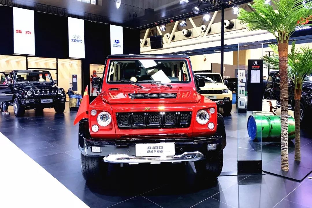 伴隨著國慶盛典的熱烈氣氛,BJ80盛世華章版在北汽集團展臺登場亮相。該車型采用火焰紅配色,車頂及后視鏡采用亮黑色涂裝設計,動力上配置2.3T渦輪增壓發動機及6速自動變速箱。
