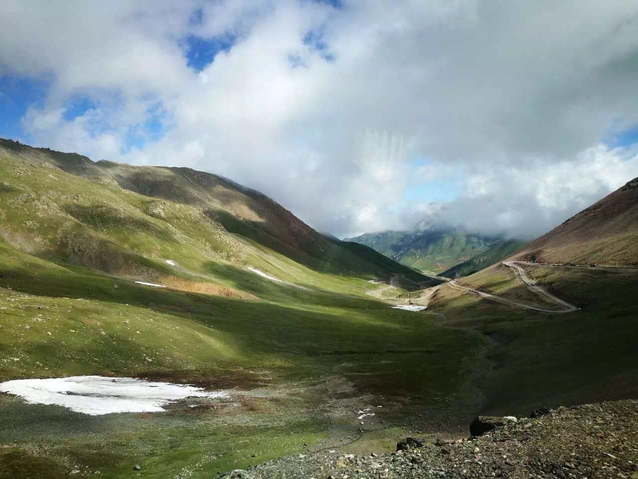 今天早上天氣很好,晴空萬里,一掃昨日陰霾。車隊離開素有“東方小瑞士”之稱的祁連縣城,很快進入冰溝地區。路兩側的植被變化明顯,提示著海拔高度的驟然上升。這樣的地方最是考驗車輛的爬坡能力。