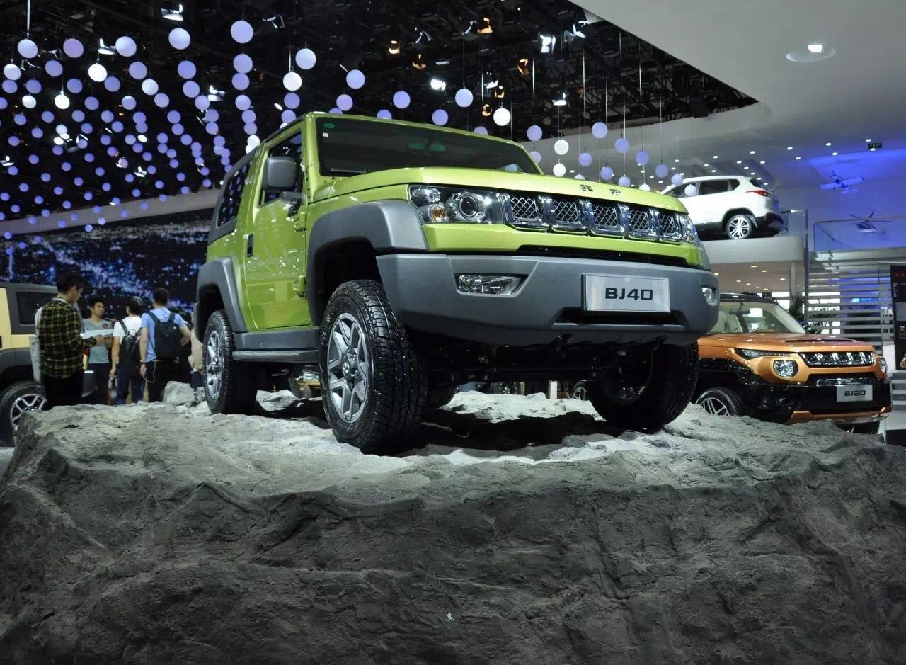 越野車展區,通過越野環境崎嶇地形的模擬展示,體現出BJ系列“越野世家”的野性與豪情。