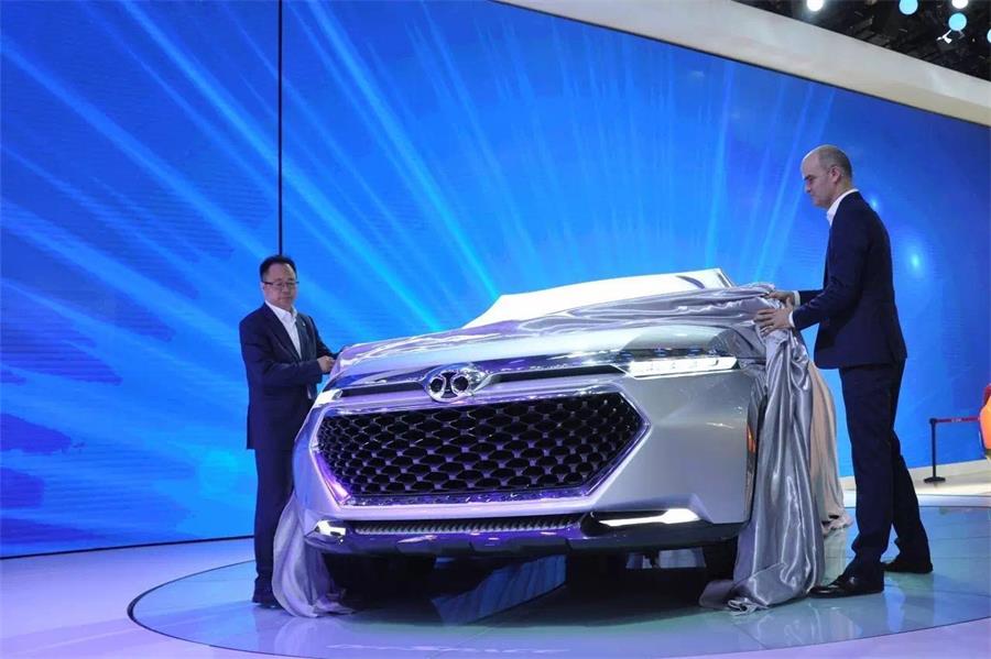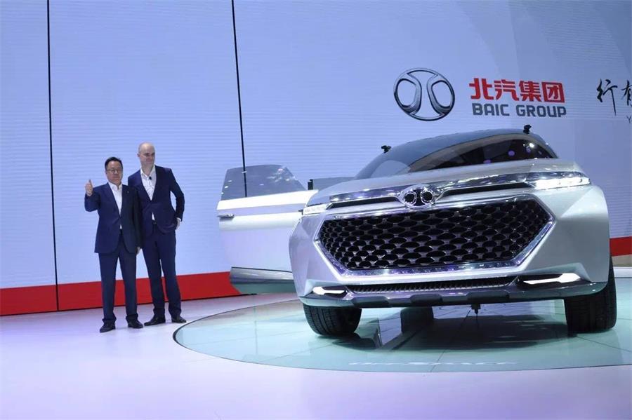 北京汽車股份有限公司總裁李峰、股份研究院設計總監Lowie vermeersch為概念車OffSpace揭幕