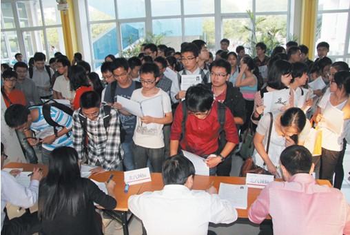 宣講會(huì)后,投遞簡(jiǎn)歷和參加面試的隊(duì)伍排成了長(zhǎng)龍,將報(bào)告廳外的走廊堵得水泄不通。有的同學(xué)為了這場(chǎng)招聘會(huì)準(zhǔn)備了很久,西裝革履、志在必得;有的同學(xué)連中飯都沒(méi)吃,坐了3個(gè)多小時(shí)的車從城市的另一頭趕過(guò)來(lái);有的同學(xué)參加完前一天北汽集團(tuán)在同濟(jì)大學(xué)的宣講會(huì),又趕來(lái)上海交大再次投遞簡(jiǎn)歷,投奔北汽的決心堅(jiān)定不移;還有的是情侶兩人一起來(lái)投報(bào),希望能成為北汽的雙職工,在北汽研發(fā)基地的“銀色大廳”舉行集體婚禮……他們中的大多數(shù)人,都是成績(jī)優(yōu)秀的研究生甚至博士生。問(wèn)起北汽最吸引他們的原因,大家眾口一詞地表示:不是薪水待遇,而是北汽“世界500強(qiáng)”的規(guī)模實(shí)力、令人向往的企業(yè)文化以及未來(lái)廣闊的發(fā)展前景。“這段時(shí)間舉行校園招聘會(huì)的企業(yè)很多,但是北汽是我的第一選擇!”浙大材料專業(yè)的研究生宋世燕說(shuō)。