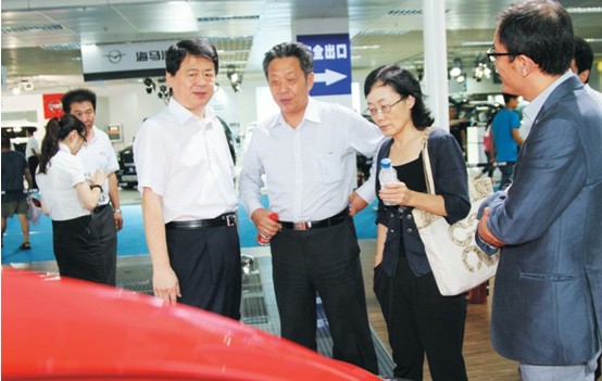 北汽集團副總經理張健出席13 日上午舉行的長春汽博會開館式,并陪同中國汽車工程學會常務副理事長兼秘書長付于武等汽車行業、企業領導參觀北汽展臺(右圖)。