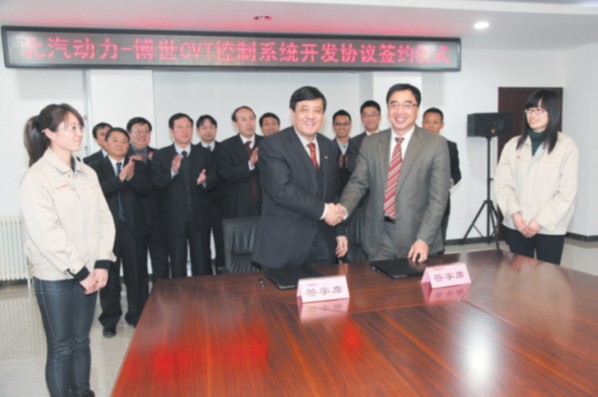 3月20日,北汽動(dòng)力總成公司與德國(guó)博世工程公司就CVT控制系統(tǒng)開發(fā)項(xiàng)目進(jìn)行洽談,北汽集團(tuán)副總經(jīng)理、動(dòng)力總成公司總經(jīng)理馬童立與德國(guó)博世(中國(guó))副總裁徐大全在合作開發(fā)協(xié)議上簽字。