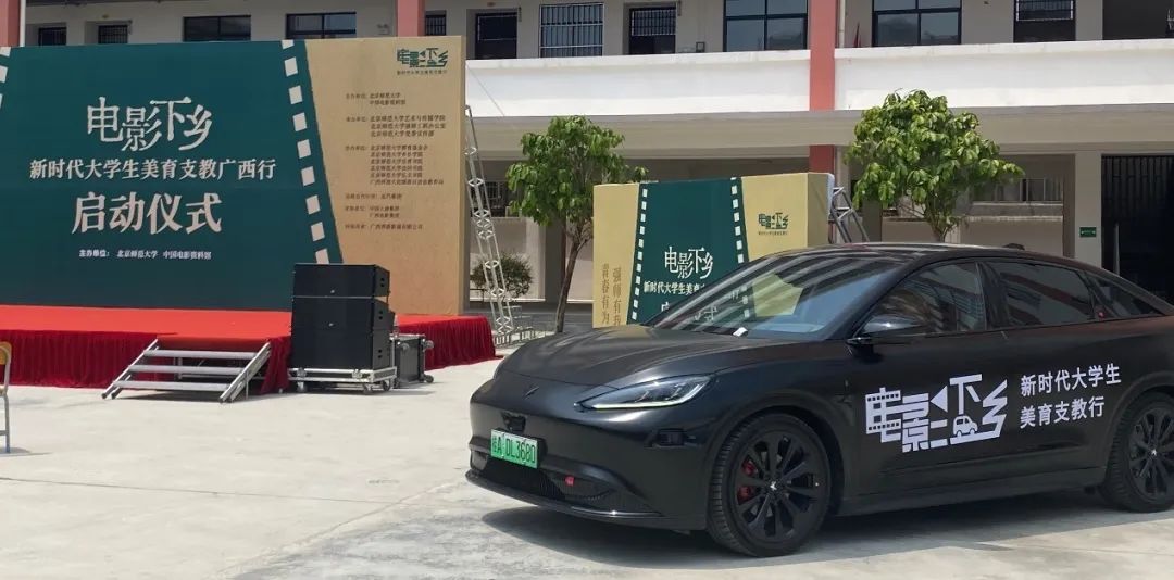 7月24日,貼著“電影下鄉”標識的極狐阿爾法S先行版、極狐阿爾法T和福田大將軍皮卡,緩緩駛入廣西大化高級中學和廣西大化實驗小學。這里是由北汽集團聯合北京師范大學、中國電影資料館發起的2023年“電影下鄉——新時代大學生美育支教行”活動首站。