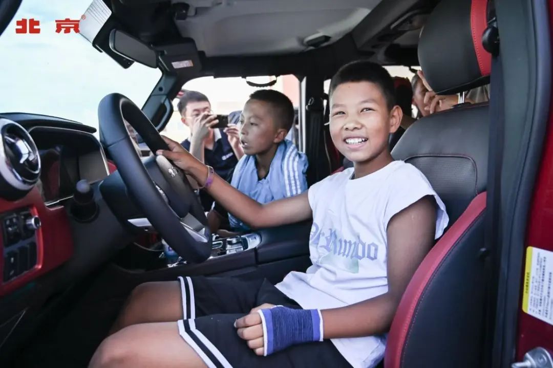 兩位BJ60、BJ40車主及家屬不遠千里,駕駛愛車親自抵達阿克陶,與支教團隊一起為活動揮灑愛心。在公開課上,他們向孩子們介紹了北京汽車的品牌誕生和發展歷程,結合當地特殊的地質與道路狀況,對少年兒童在日常出行中的注意事項以及遭遇險情時如何確保人身安全進行詳細講解,共同在美術老師指導下進行石膏車模手工涂鴉,學習體驗色彩在設計、應用中的重要性。孩子們在志愿者的講解下,還迫不及待地體驗了北汽車上的一個個“智慧功能”。